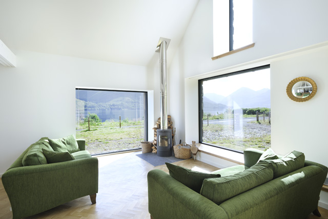 Inside the property is furnished with an eclectic mix of modern and traditional furniture, the open plan lounge, kitchen and dining area, is a perfect place for the whole family to relax after a day exploring. Throughout the property has beautiful wooden floors and benefits from wifi internet access. In the lounge area the large comfortable sofas are placed not only to enjoy the view, but the warmth from the striking wood burner in the corner. For guests with an aptitude for music, there is a piano, to add some musicality to their stay. Additional facilities outwith this area on the ground floor include, a spacious master bedroom, again with a large picture window, a large utility room, and a shower room.